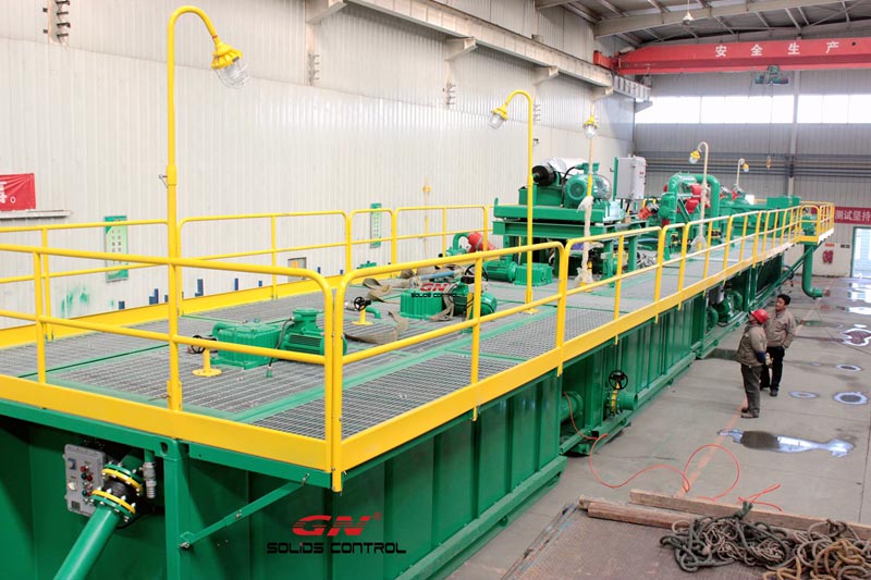 5.本套750HP鉆機泥漿固控系統(tǒng)一共包含4具泥漿罐,所有固控設(shè)備都被緊湊合理的布局在泥漿罐預(yù)設(shè)的位置上,人員操作起來更方便更安全。